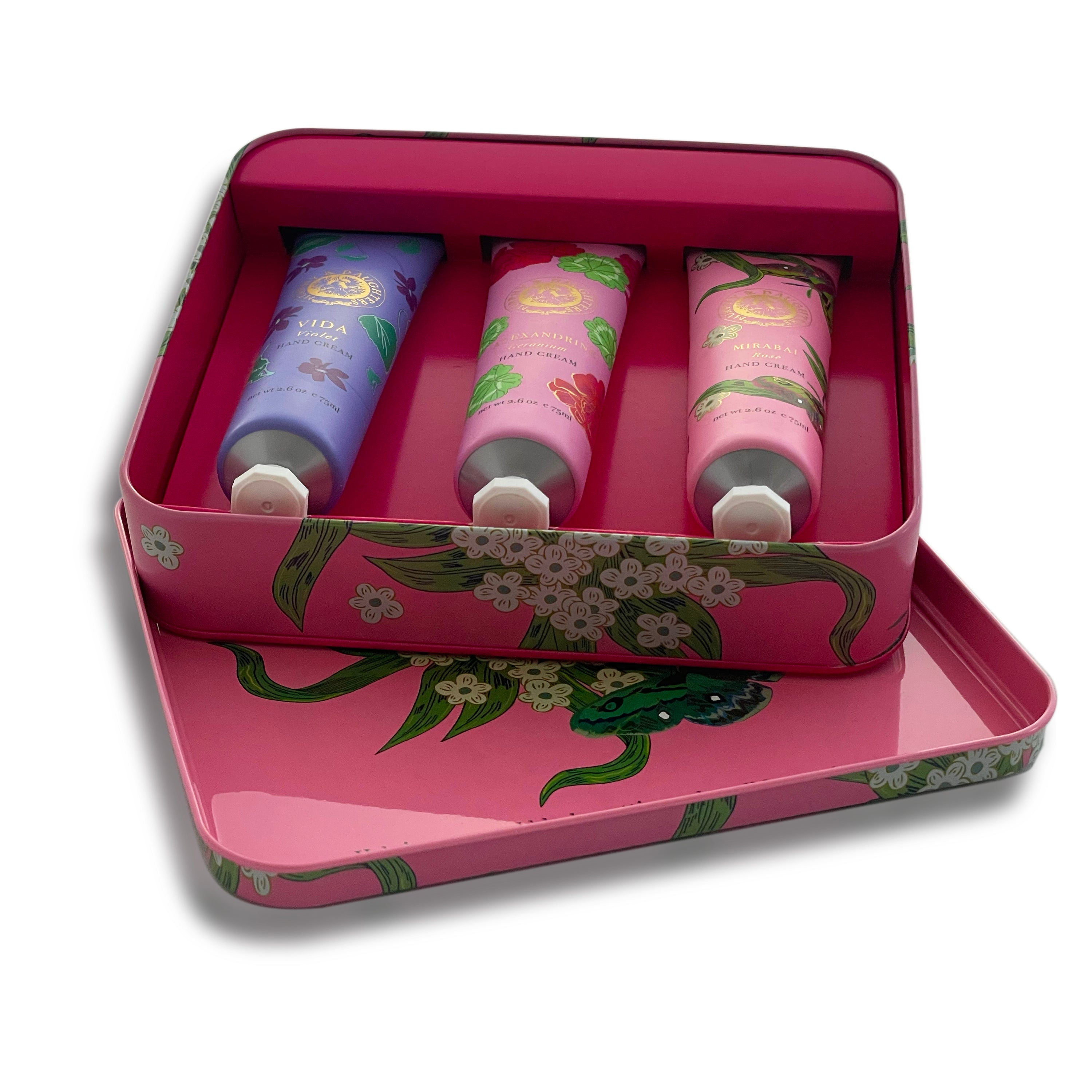 • Gift Set of 3 full size hand creams in a Luxe Tin - Geranium Design Murphy & Daughters